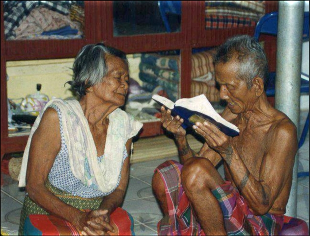 (An Elderly Isan Couple Reading Their Own Isan NT)